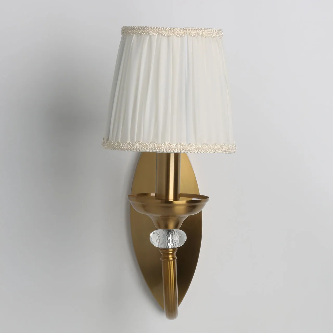 Основание/ металл/ медовая бронза Абажуры/ текстиль/ белый Декор/ хрусталь/ прозрачный