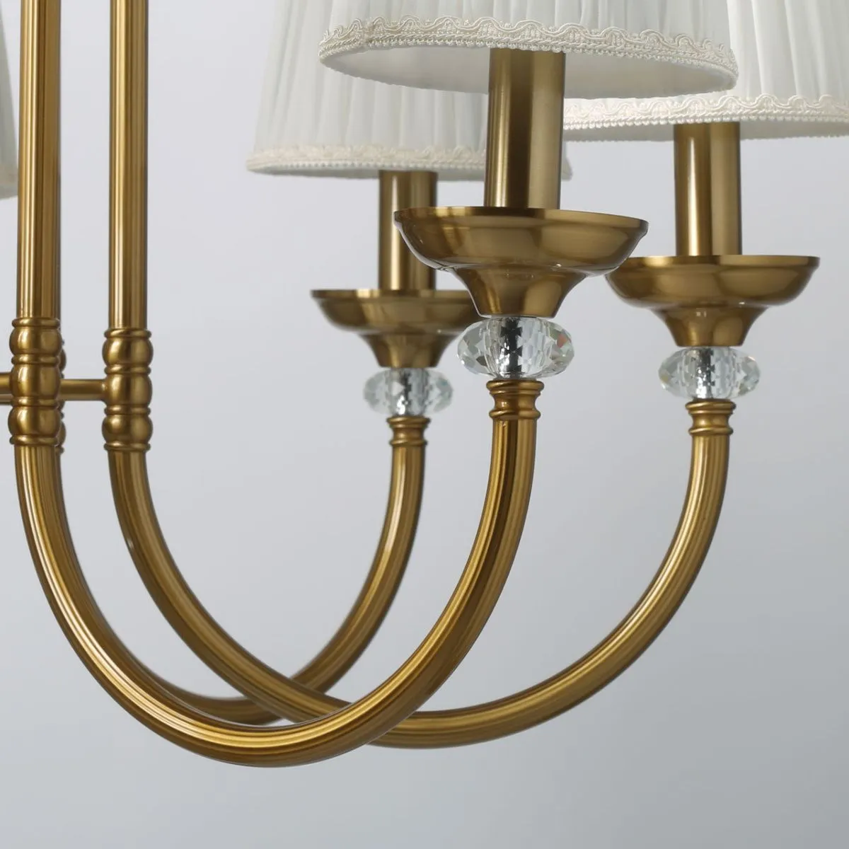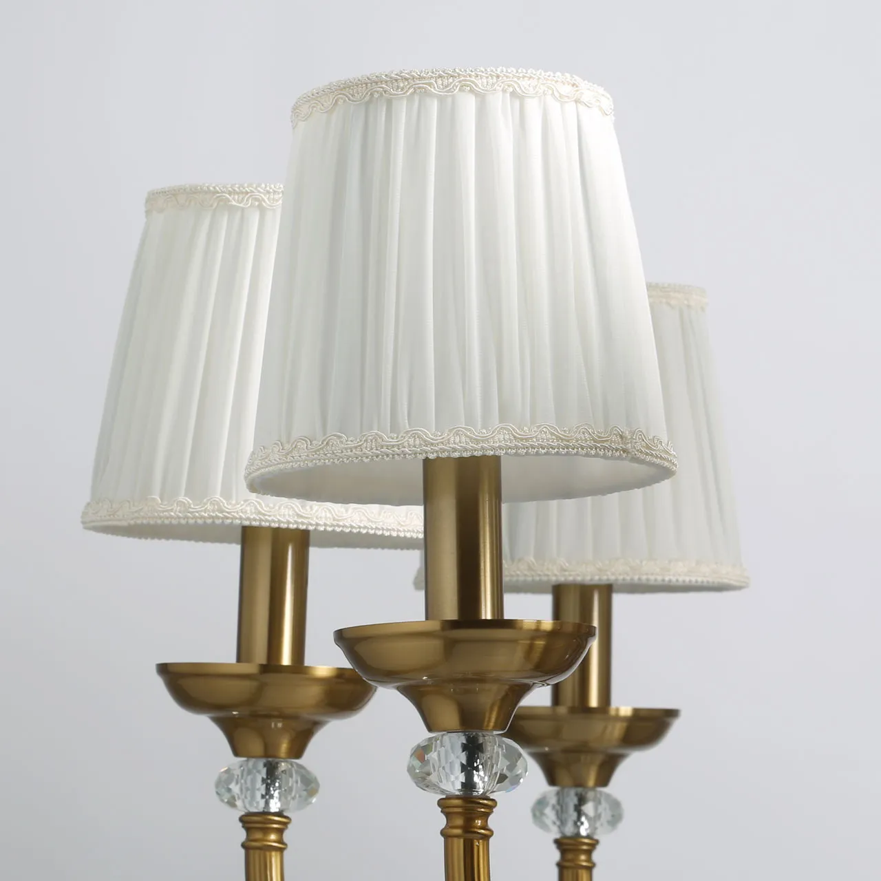 Основание/ металл/ медовая бронза Абажуры/ текстиль/ белый Декор/ хрусталь/ прозрачный