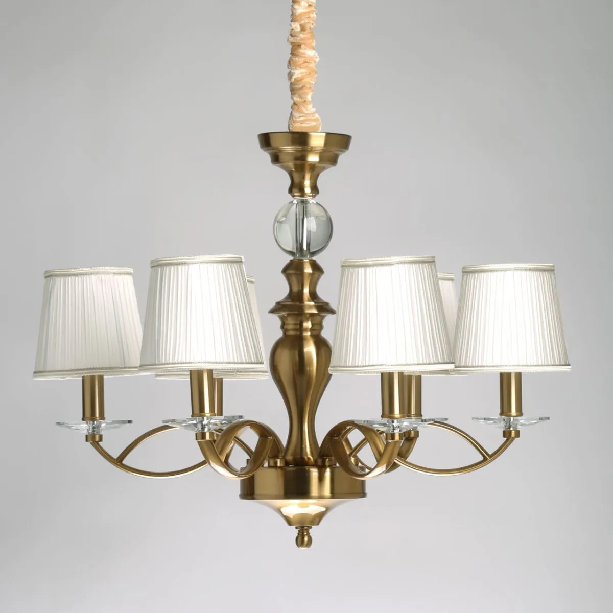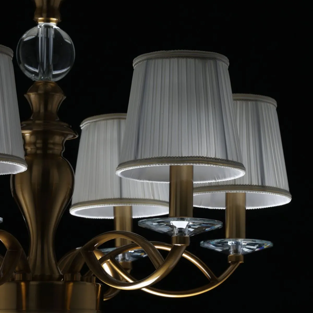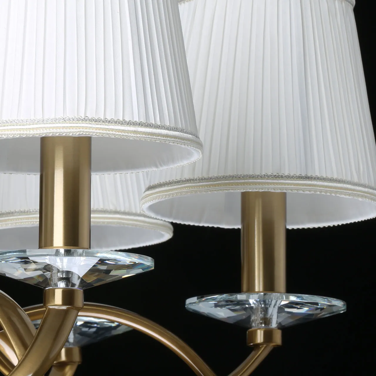 Основание/ металл/ медовая бронза Абажуры/ текстиль/ белый Декор/ хрусталь/ прозрачный